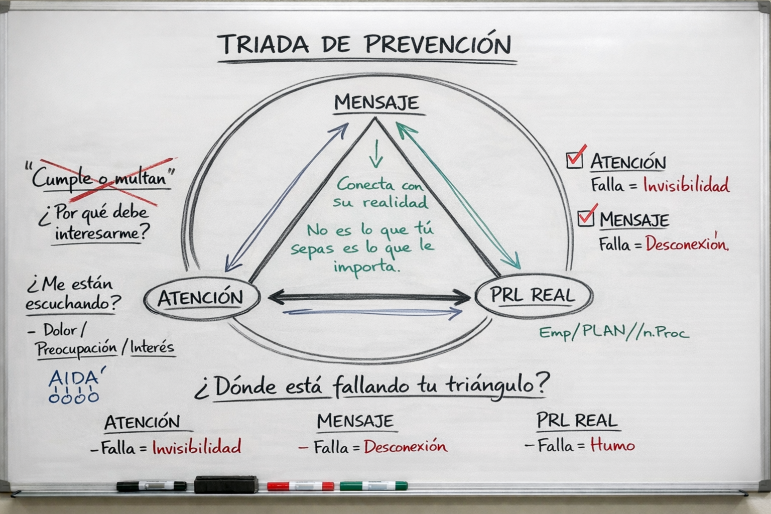Muchos técnicos sienten que, a pesar de tener toda la documentación en regla, su mensaje no cala en la empresa. Para que la prevención de riesgos laborales sea realmente efectiva, no basta con el conocimiento técnico; es necesario aplicar un modelo integral que hemos denominado la Tríada de la Prevención.