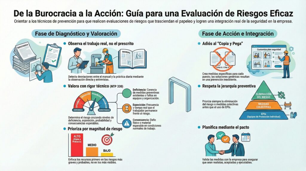 Antes de cerrar tu próxima evaluación, pregúntate: ¿Las medidas que propongo responden a un riesgo real y están adaptadas a la empresa, o solo buscan protegerte a ti y cumplir un trámite? La respuesta definirá si estás haciendo prevención de verdad.